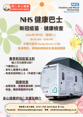 Spring COVID‑19 vaccinations and free health checks will be available in Liverpool next week, as the NHS Living Well Bus visits Chung Wah Supermarket on Hardy Street.